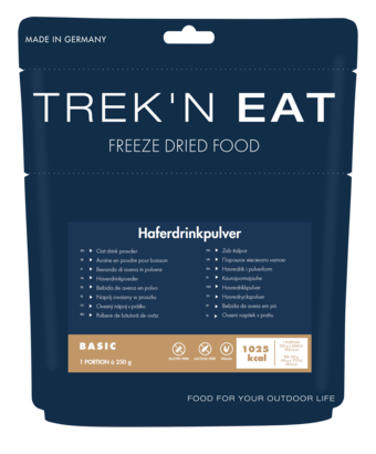 The finest oats are processed into a creamy, slightly sweet powder that can be mixed quickly and easily with water. Light in your luggage, easy to prepare and yet full of flavor - the TREK'N EAT oat drink powder adapts to your everyday adventures and provides valuable energy for all challenges.