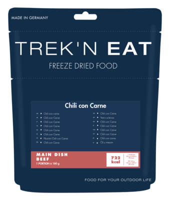 Here you’ll find everything that makes a superb chili: kidney beans, beef and, for that little extra dash of spicy zing, onions. A good chili enlivens the soul in any situation, especially when the weather hasn’t exactly played along with your outdoor adventure plans. Trek’n Eat’s Chili con Carne goes from pouch to plate quickly and is best when served piping hot. It soothes the chill you feel, both outside and inside, plus it satisfies empty tummies and is a secret weapon for warming up cold feet. When it’s especially unpleasant outside, you can pull the Chili con Carne out of your pack like a hidden ace up your sleeve. Of course it can’t be beat on warmer outings too when motivation for a coming adenture needs an extra punch of get-up-and-go.