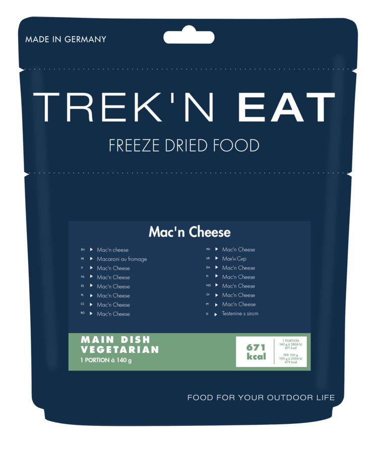 Trek‘n Eat new Mac‘n Cheese delivers just the right amount of delicious egg noodles in a creamy, cheesy sauce with Gouda and Edam. Crispy fried onions provide the crowning kick. The cheesy, crispy pasta dish is perfect for ending an adventurous day with a flavorful