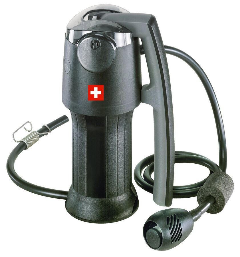 The Vario combines individual efficiency with the simplest possible handling. The technology it uses consists of three filter levels: a high-performance glass fibre filter, a ceramic pre-filter that can be adjusted individually according to the cloudiness of the water, and active charcoal for eliminating odours. Anyone who needs up to two litres of drinking water per minute can use the glass fibre and active charcoal filter. If the water is extremely cloudy, the ceramic pre-filter can be fitted in a moment in order to extend the service life of the glass fibre filter. The Vario is compatible with most standard outdoor bottles and hydration bladders.