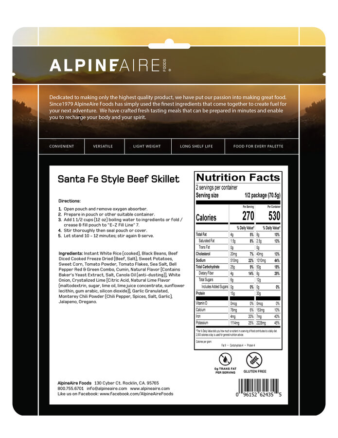 A zesty southwestern flavored combination of black beans, sweet potatoes, and peppers paired with beef and rice.
