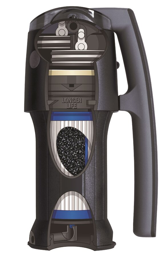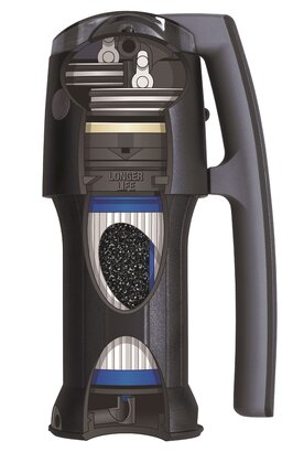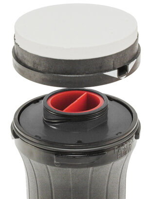 The Katadyn Vario uses ceramic as a cleanable dirt shield and glassfiber for microbiological filtration with minimal pump resistance. In "LONGER LIFE" mode, the turbid water is first prefiltered through the ceramic disk and has an output of approx. 1L/min. When operating in mode "FASTER FLOW", the water is directed straight to the glassfiber membrane, increasing the water flow to up to 2L/min.