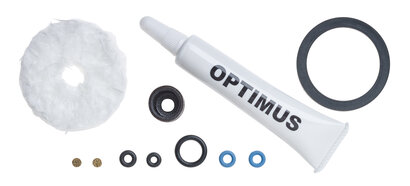 Spare Parts Kit Light for Optimus Nova, Nova+ and Polaris Optifuel. Content: 2 Blue O-rings for Spindle 1 Lubricant 2 Fuel filters 1 Preheating pad 1 Flat seal for Pumphead 1 Pump leather 1 O-Ring for pump Spindle 1 O-Ring for Bajonetcoupling