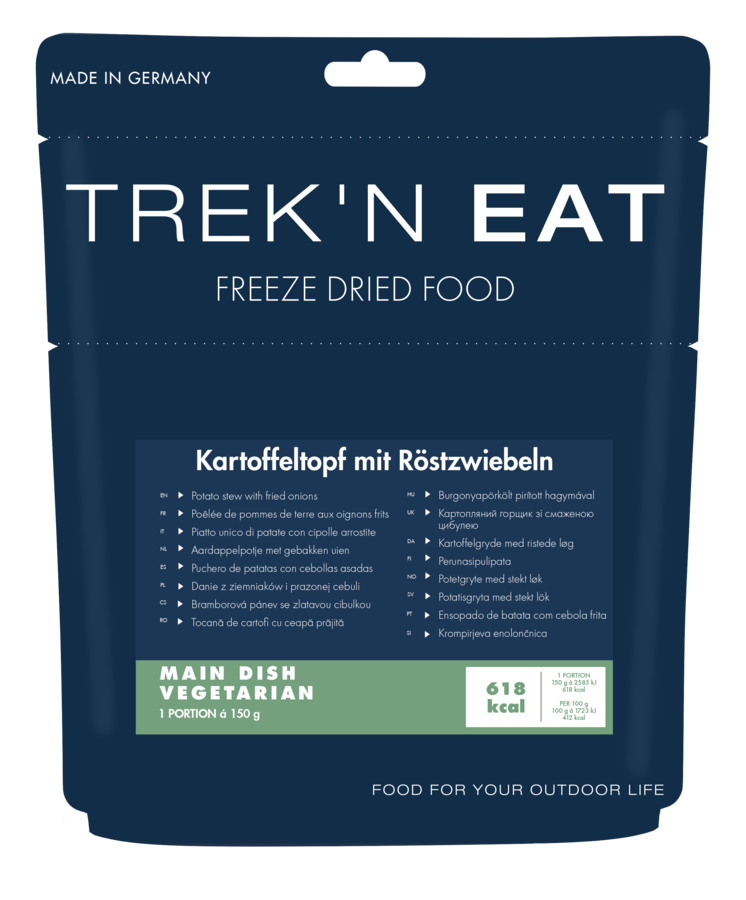 If you are longing for a hearty vegetarian meal, this Potato Stew with Fried Onions is a must in your pack or bag. Crisp roasted onions are what give this dish its special pizzazz. Potatoes and soya ensure that not only are tastebuds satisfied but your hunger is satiated too. When it’s time for a hearty and substantial entree, this Potato Stew with Fried Onions is your ideal companion on any outdoor adventure.