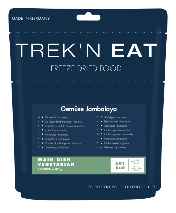 Vegetable Jambalaya is based on long-grain rice and is particular at home in Cajun and Creole cuisine. Of course, New Orleans, in the U.S. state of Louisiana, is actually the culinary capital of Jambalaya, but now outdoor enthusiasts can prepare this unique taste experience anywhere in the world. The traditionally vibrant spice combination awakens all of the senses in outdoor life. Simply pour boiling water into the pouch to the fill line, stir well, wait a few minutes and enjoy.