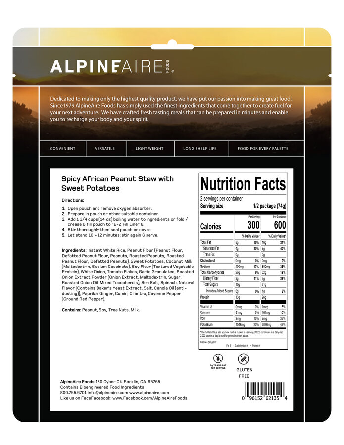 | Calories/Pouch | : | 600 |