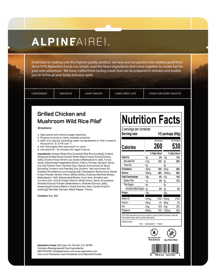 Grilled chicken and mushrooms in a creamy, savory sauce with wild rice (cooked) and herbs.
